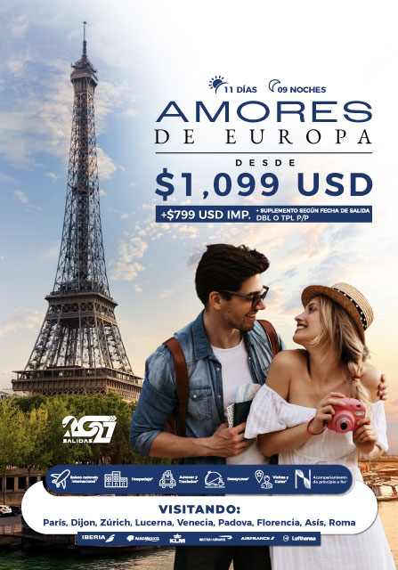 Descubre un recorrido diseñado para enamorar a tus clientes con lo mejor del continente. Este circuito combina la elegancia de Francia, la belleza natural de Suiza y el encanto histórico de Italia, creando una experiencia inolvidable llena de paisajes icónicos, cultura y romance.