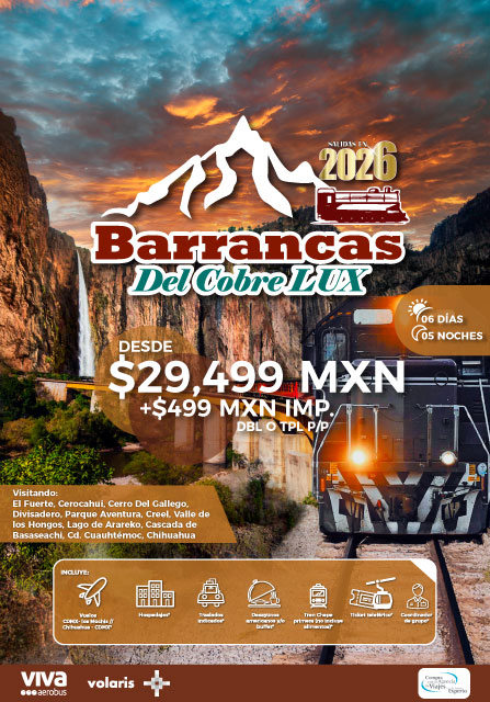 El fuerte, Cerocahui, Cerro del Gallego, Divisadero, Parque de Aventuras, Creel, Valle de los Hongos, Lago de Arareko, Cascada de Basaseachi, Cd. Cuauhtémoc, Chihuahua