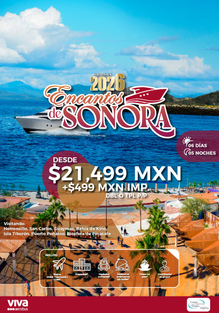 Hermosillo, San Carlos, Guaymas, Bahía de Kino, Isla Tiburón, Puerto Peñasco, Biosfera del Pinacate
